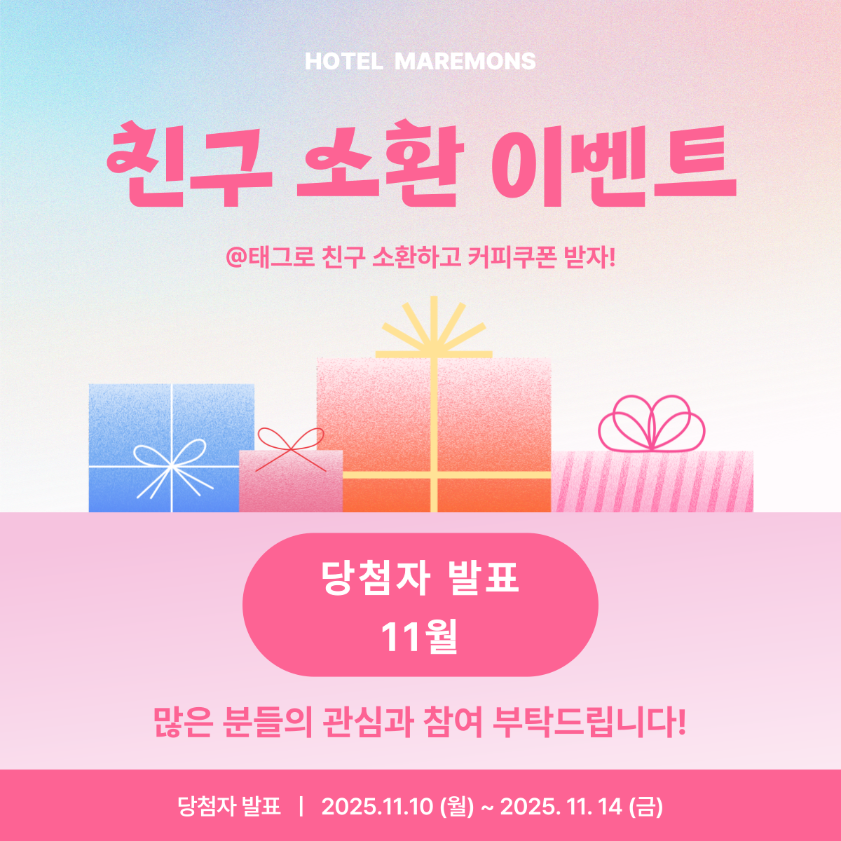 마레몬스 호텔 인스타 " @친구소환 " 이벤트!!!